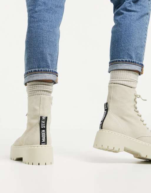 Steve Madden Skylar Schnurstiefel Aus Wildleder In Beige Mit Dicker Sohle Asos
